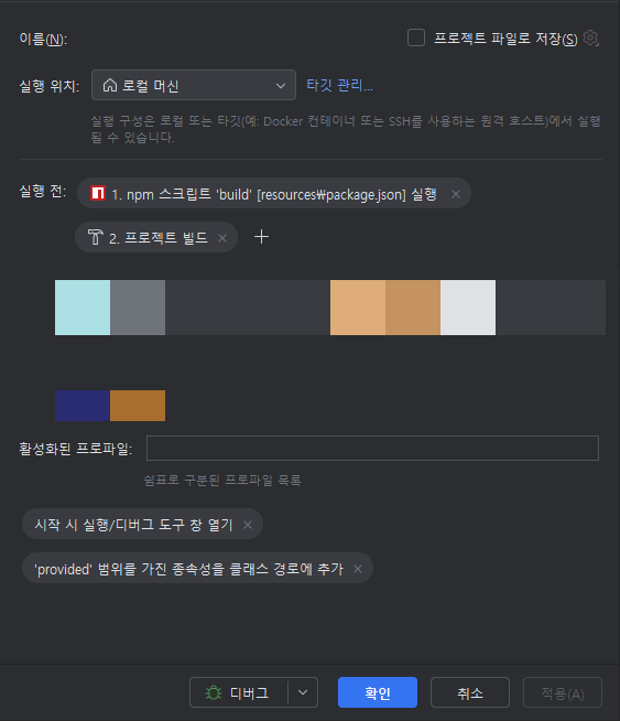 하면 인텔리제이에서 Spring Boot 또는 Spring Webflux 프로젝트를 실행할 때 마다 Svelte 프로젝트를 새로 빌드하게 됨. 굳이 터미널에서 npm run build 를 입력할 필요는 없으나 매 Spring 서버 실행마다 변경점이 없어도 빌드를 하게 된다는 단점이 있음.